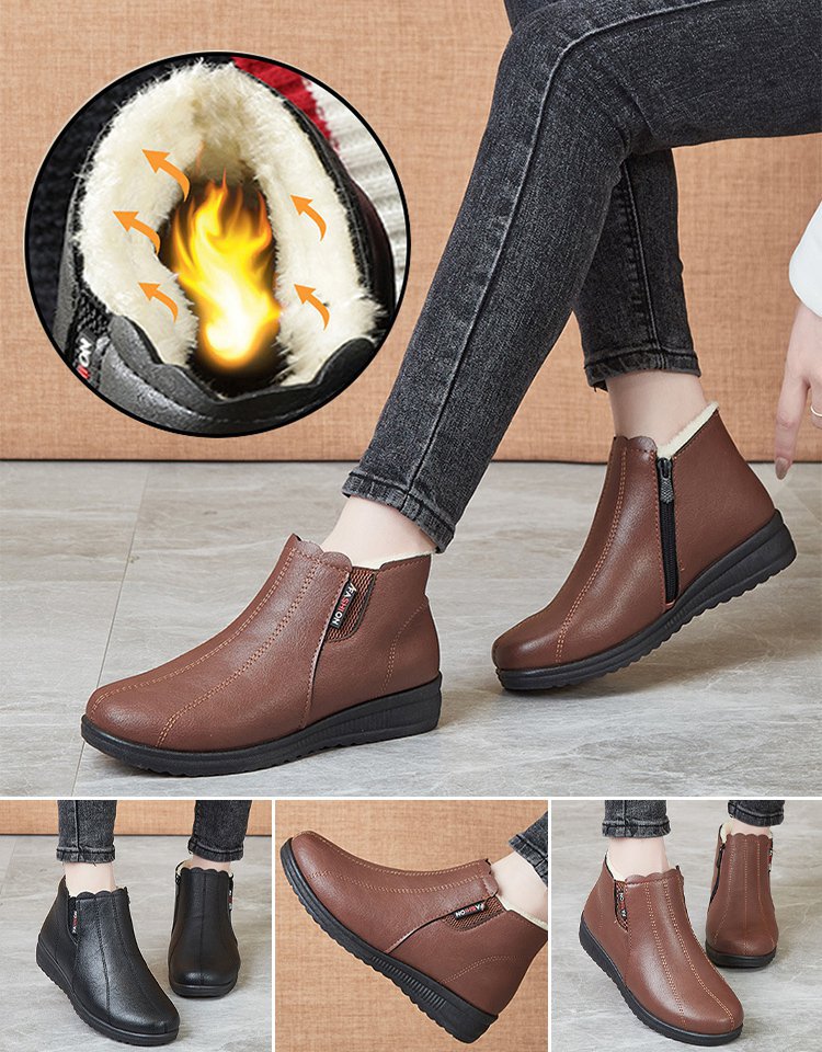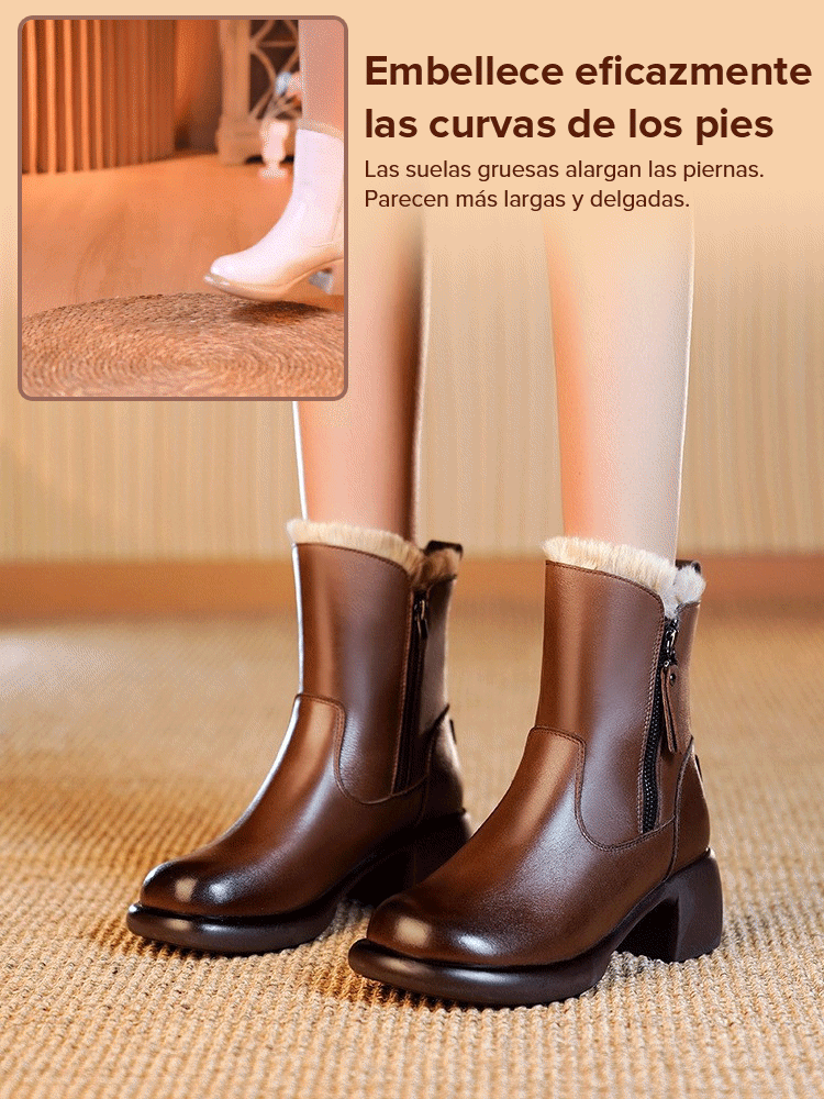 Zapatos de cuero para mujer cálidos, antideslizantes y resistentes al desgaste