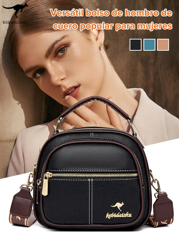Bolso de hombro cruzado de tres capas de cuero