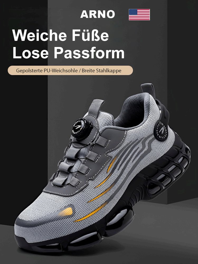 Der Sicherheitsschuh mit Stahlkappe Technologie bietet Schutz bis zu einem Druck von 1.500 kg.